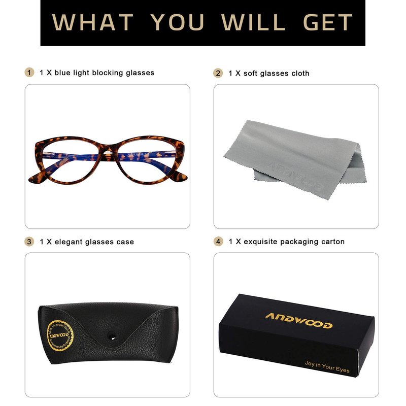 - 【SUBSTRATE ANTI-BLUE LIGHT LENS】 - ANDWOOD blue blocker glasses women are use substrate anti-blue light lens: Filter high level blue light from digital screen of computer, phone and TV,maintain HD clear vision with less color distortion.