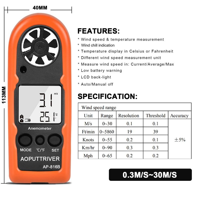 - ✅【Multi-Purpose Digital Anemometer】AP-816B wind speed meter can be used not only for outdoor activities, like shooting, sailing, mountain climbing measurement, but also used for electrical equipment testing, like HVAC appliances and research measurement from navigation to aerial survey.