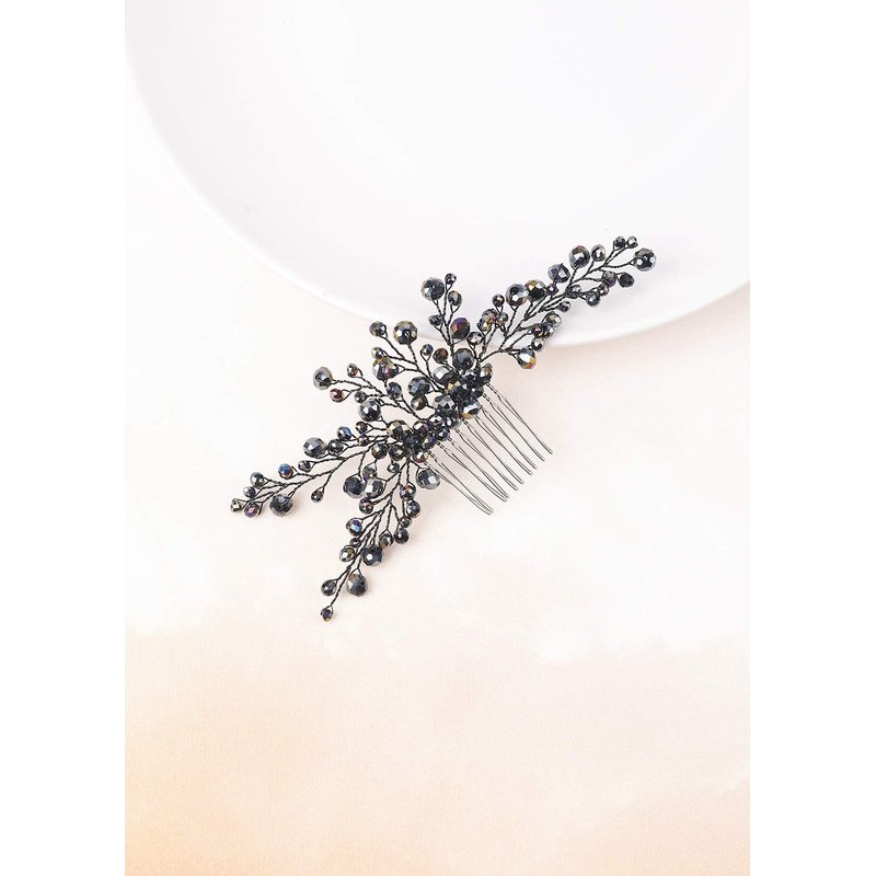 Anglacesmade Bridal Black Hair Comb Crystal Hair Crown Black Beaded Prom Party Festival Wedding Hair Accessories for Women and Girls