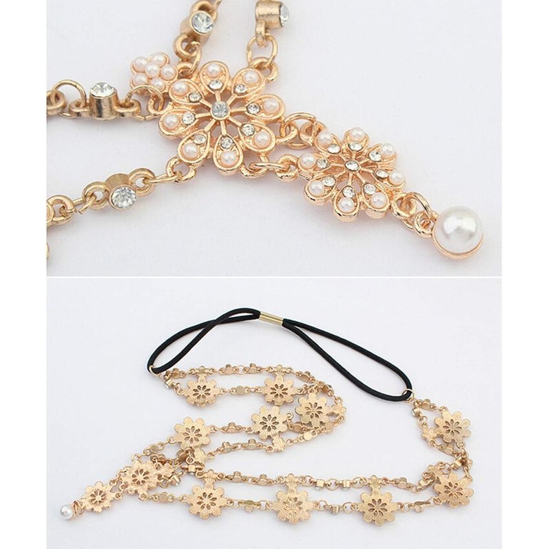Anglacesmade Bridal Head Chain Rhinestone and Pearl Headband Bohemian Floral Wedding Headpiece Prom Party Festival Hair Accessories for Women and Girls(Gold)