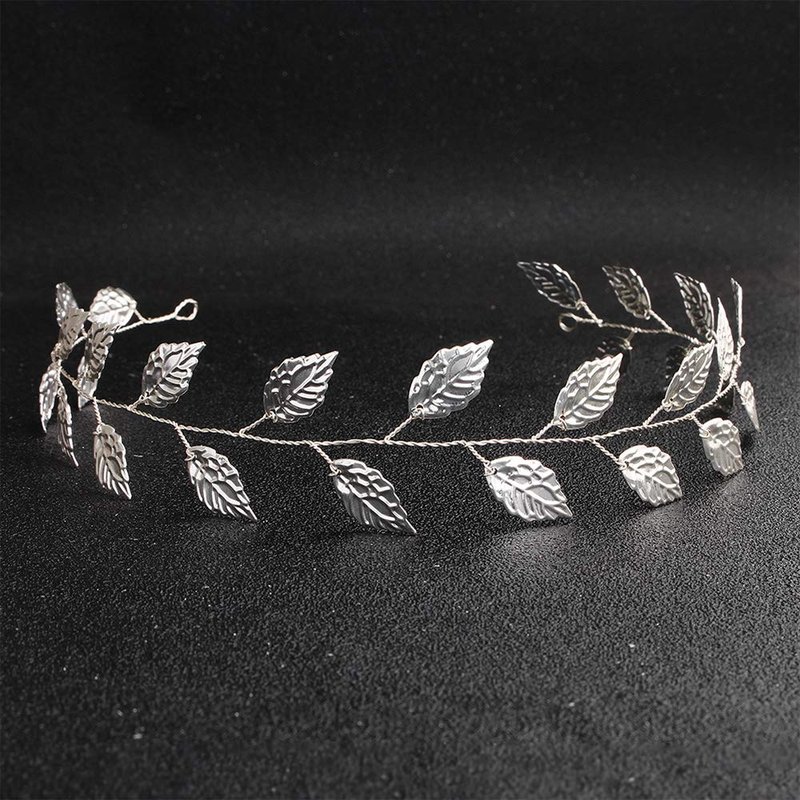 Anglacesmade Bridal Headband Leaf Hair Vine for Birde Bridesmaid Leaves Branch Wedding Wreath Prom Party Festival Hair Piece for Women and Girls (Silver)