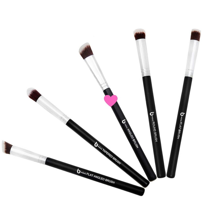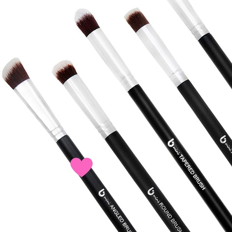 - mini Round: Works amazingly well with any type of eye shadows. Perfect brush to use with eye shadow pigments. It grabs just enough without making a mess all over your face and distributes the pigment exactly where you want it. Also ideal for blending eye shadows for that smokey eye look.
