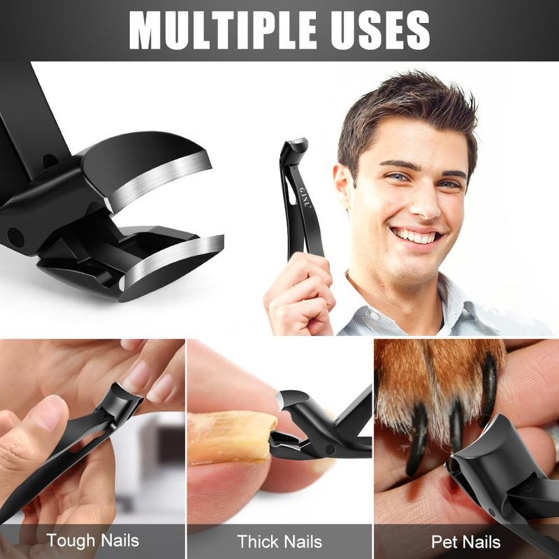 - WIDE JAW OPENING TOESNAIL CLIPPER - Extra Wide Opening Nail Clipper for thick nails wider than the opening of ordinary nail clippers, which can easily clip any thick nails. Nail clippers for thick nails adopt an innovative lever design that reduces the pressure required to cut your nails, allowing you to cut hard and thick nails with ease.