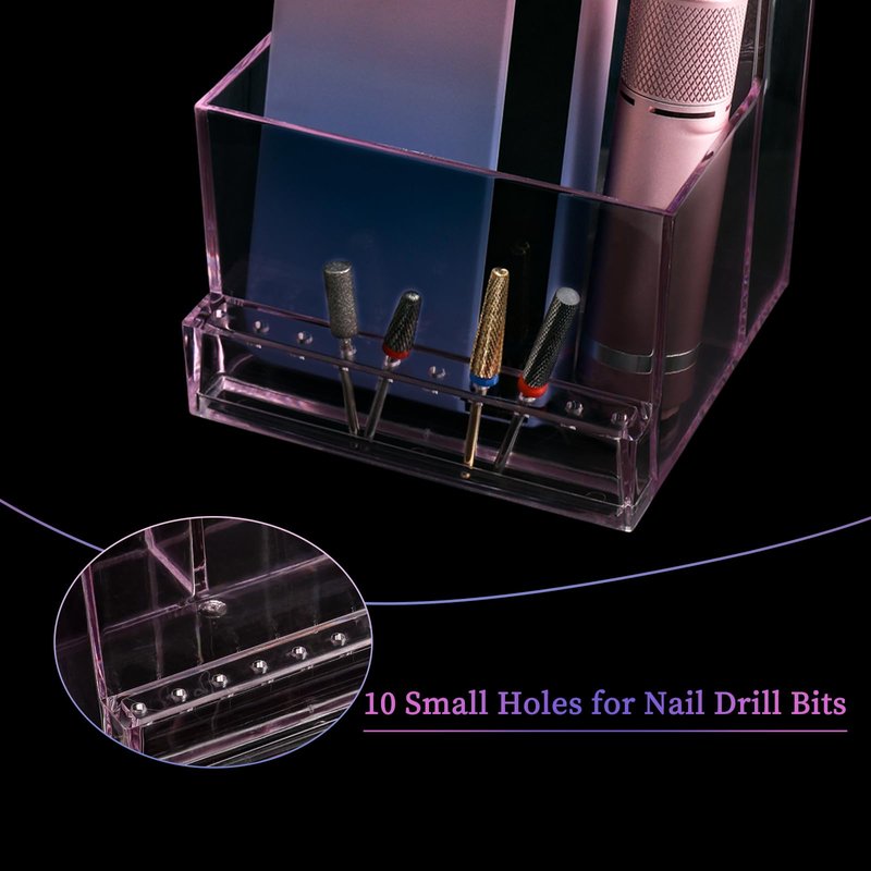 - 【Great for Organization】The plastic nail drill holder is a must-have manicure tool for nail-lovers to keep the station organized. The nail organizer and storage for nail tech can store nail drills, drill bits, nail art brushes, nail polish and other tools, allowing you to easily reach your tools and saving space.