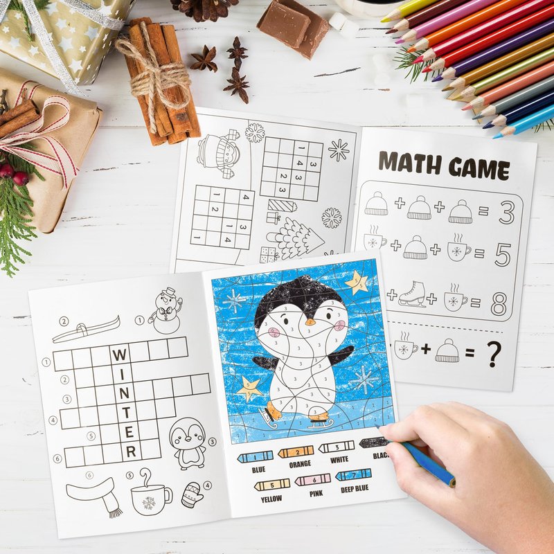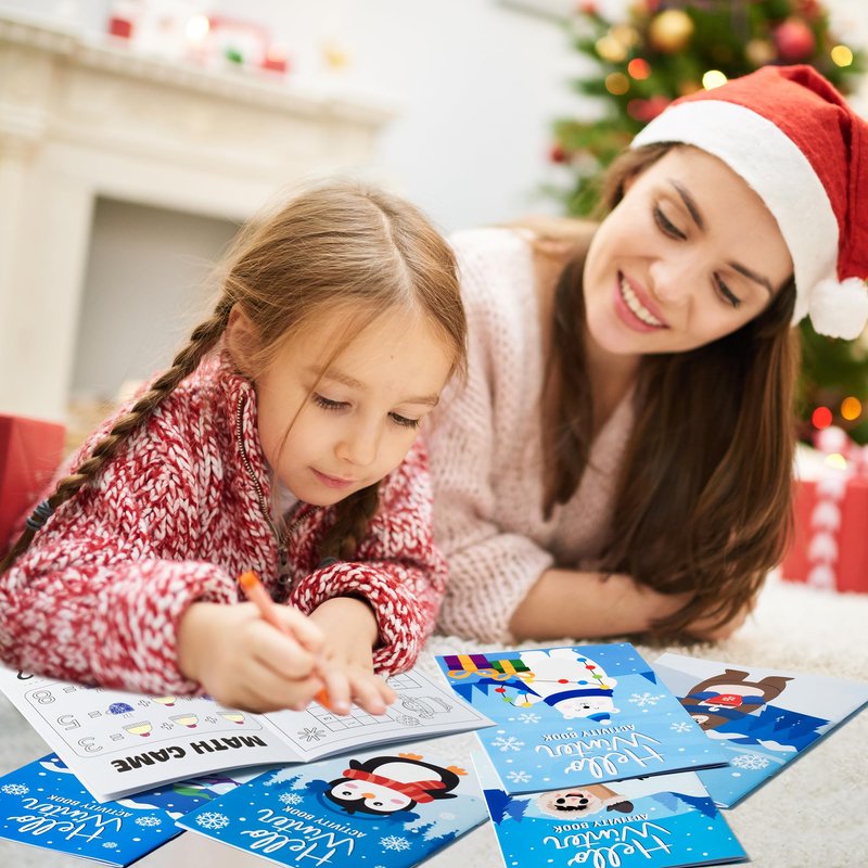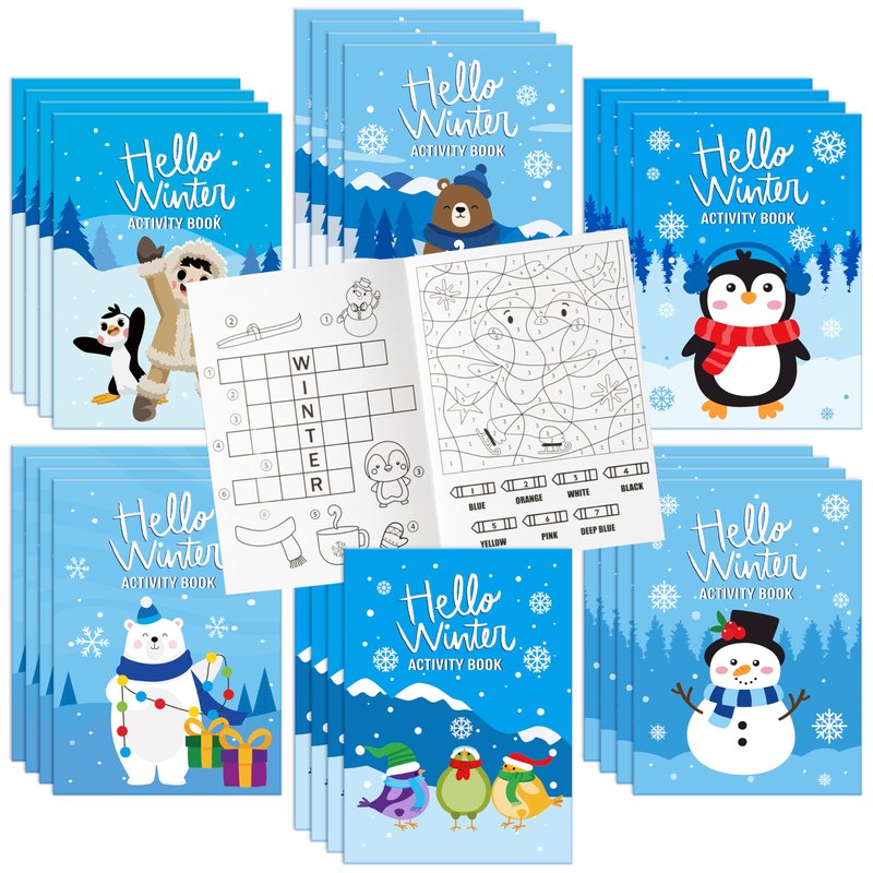 ANGOLIO 24Pcs Hello Winter Activity Coloring Books Including Snow Snowman Polar Bear Penguin DIY Art Drawing Patterns Learn Math Party Favors Christmas Gifts Home Classroom Activity Supplies for Kids