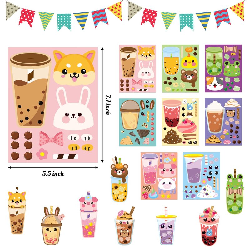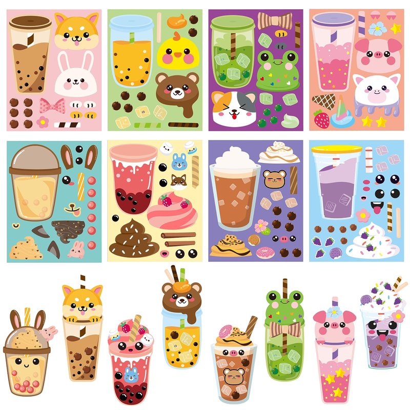- Rich & Diverse: The stickers are designed for boba tea, and the face stickers are all cute cartoon patterns. There are rich and diverse stickers such as pearls, cream, chocolate, ice cream, animals, ice cubes, etc., which will not be monotonous, and the color is mild and will not make children's eyes tired