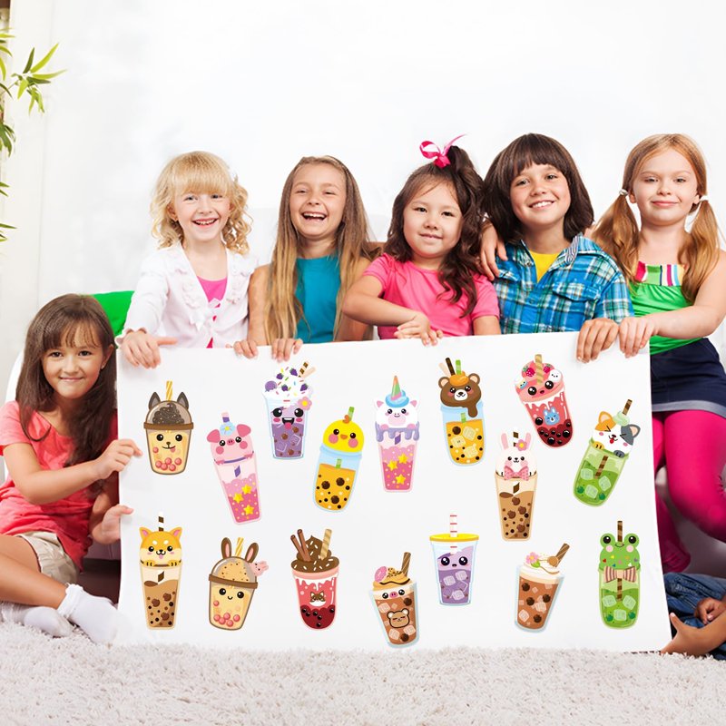 - Boba Tea Set: Boba tea sticker set provides a total of 40 pieces, 8 types of boba tea, each face sticker size is 7.7*5.5 inches, the size is just suitable for children's sticker activities, easy to pick up