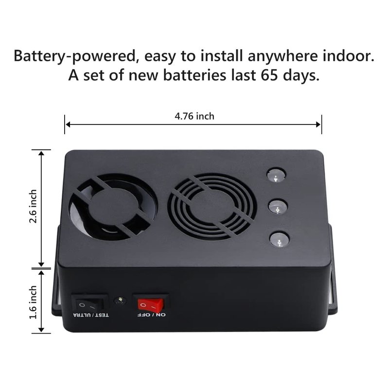 - Battery operated mouse repellent powered by 2 “C” alkaline batteries (lasts 65 days for 24 hours operating); Easy to install, no need to plug, good for places with no electricity