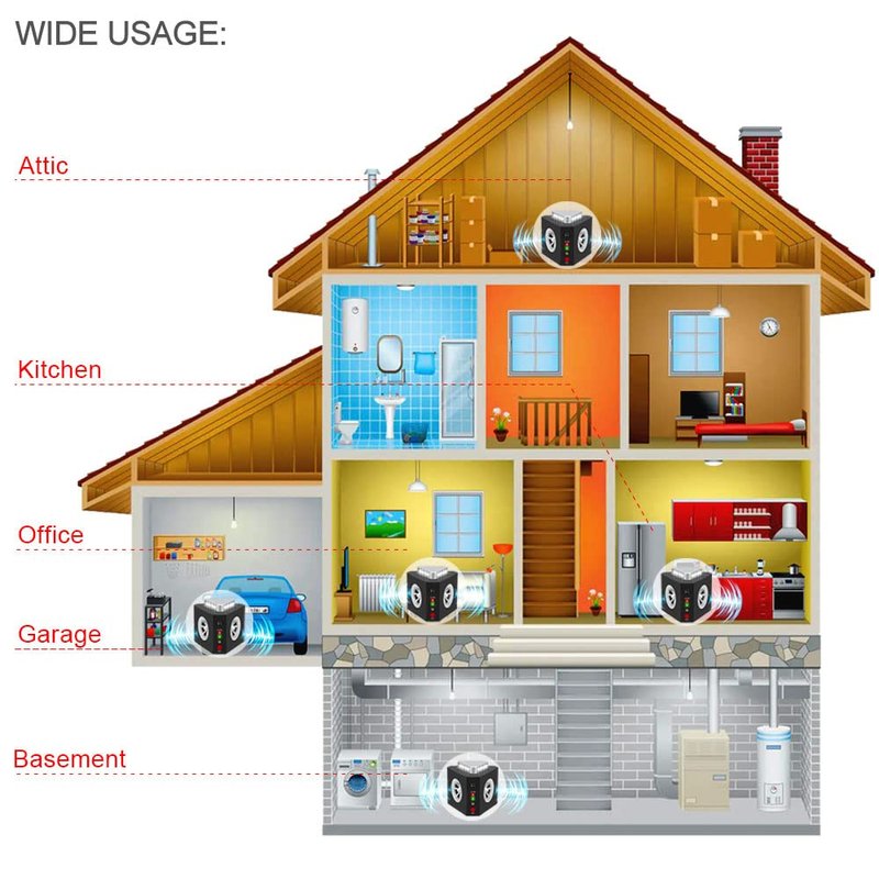 - Easy Application - Plug into standard 100-240V outlet to active the rodent repeller, protect your garages, rooms, attic, basement, warehouse, barn, kitchen, office, RV, van anywhere indoors