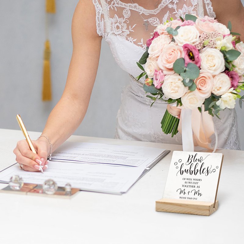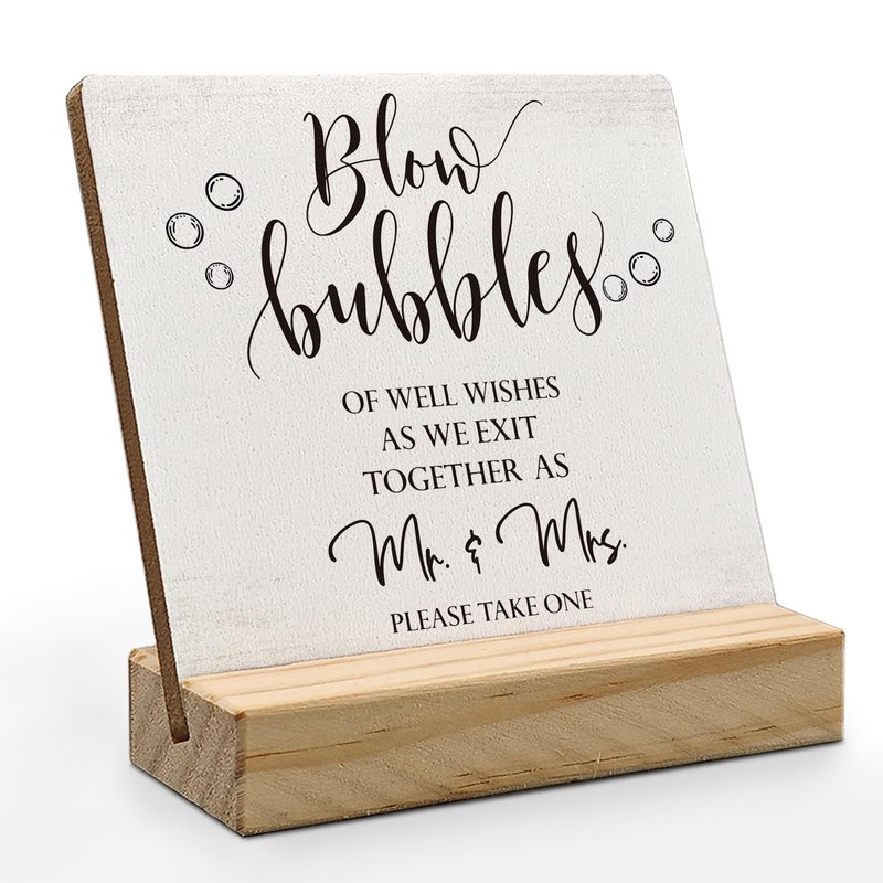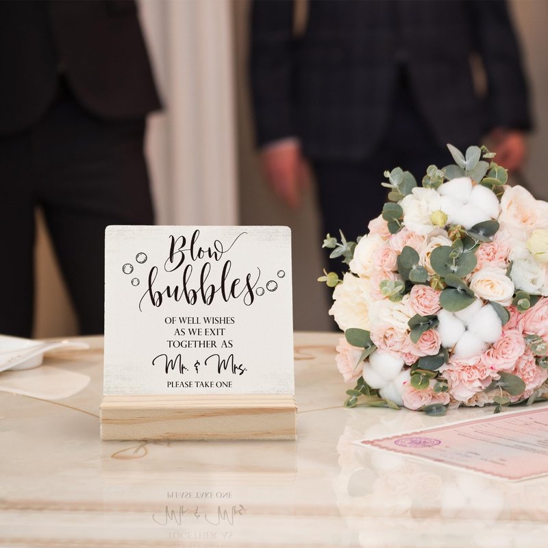 ANIANG Wedding Bubbles Desk Decor, Wedding Decor, Bubbles for Wedding, Bubbles Wedding Wood Plaque Sign, Wedding Accessories for Reception Wooden Plaque Sign with Wood Stand for Wedding Send Off