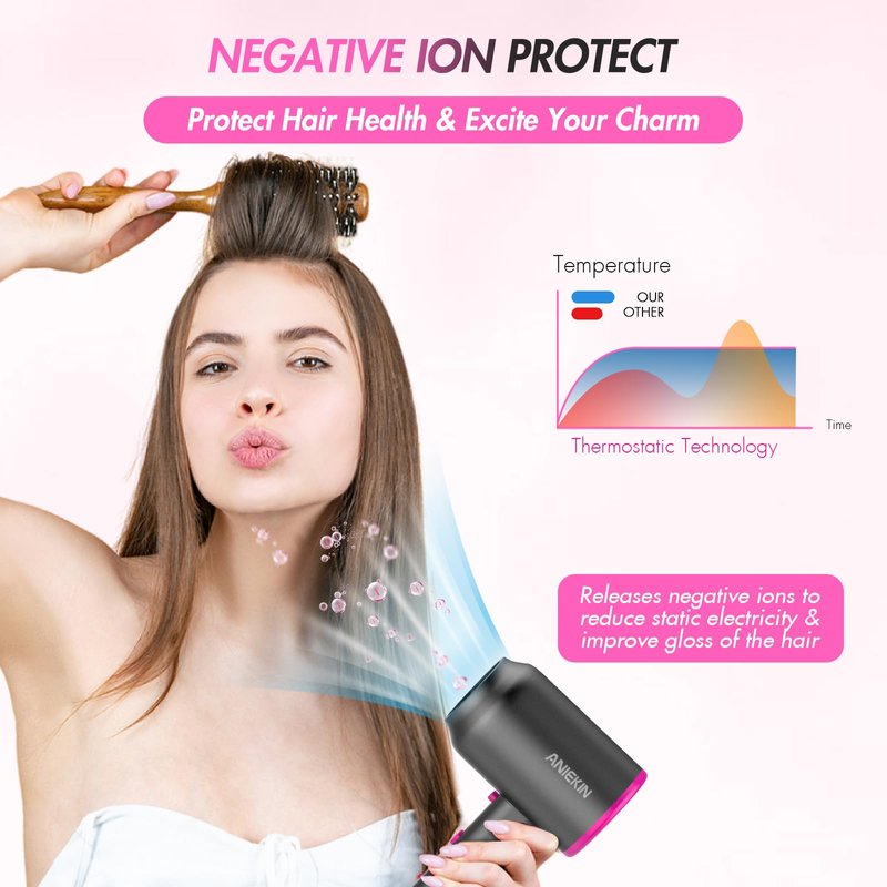 - 【1875 Watt Powerful Motor for Fast Drying】ANIEKIN hair dryer is equipped with a 1875W power and high rotating speed to output strong and smooth airflow effortlessly. Combined with the constant temperature, the blow dryer ensures fast drying and styling to provide efficient protection and optimal care for your hair.