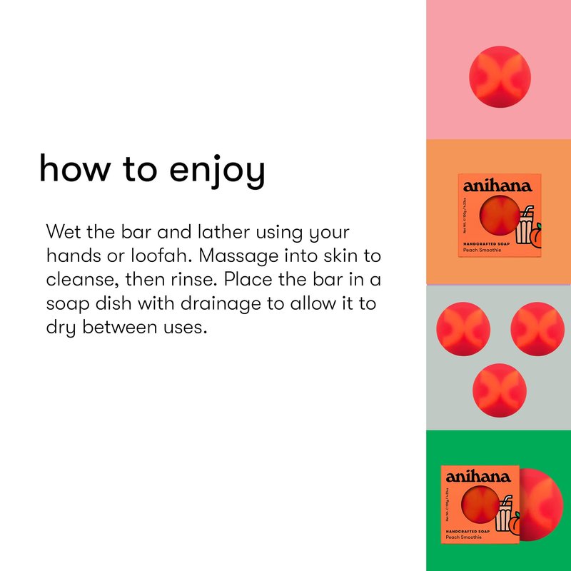 ANIHANA Handcrafted Soap 3 Pack with Coconut Oil, Gentle Cleansing Paraben Free Cruelty Free Refreshing Peach Smoothie Scent 4.23 oz each