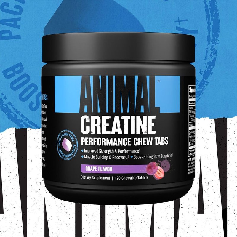 Animal Creatine Chews Tablets - Enhanced Creatine Monohydrate with AstraGin to Improve Absorption, Sea Salt for Added Pumps, Delicious and Convenient Chewable Tablets - Grape