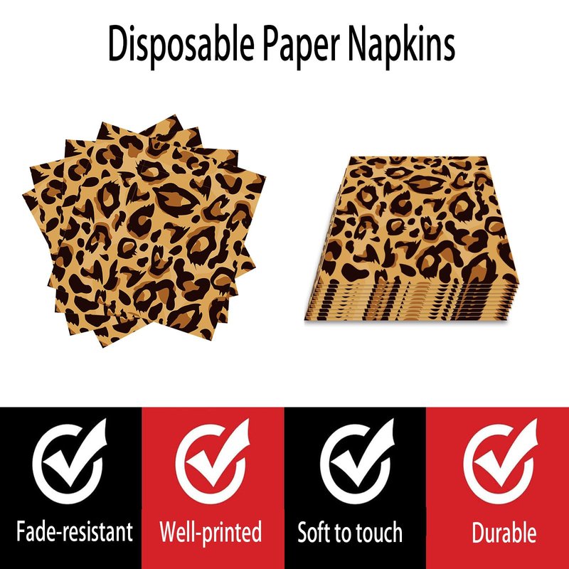 - Widely Applicable: Animal Leopard Print Party Napkins can be used in various occasions, such as animal Party Supplies, leopard Party Supplies, cheetah Birthday Party Decoration, baby baptisms, birthday parties, stage performances, etc. to create a joyful atmosphere and impress your guests.
