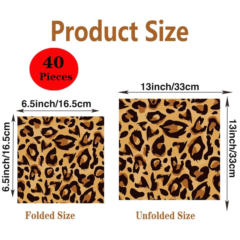 - Includes 40 Napkins: This set of leopard print napkins measures 6.5 inches long and 6.5 inches wide when folded and 13 inches long and 13 inches wide when unfolded. Each order includes 40 pre-folded napkins, plenty of quantity to meet your various uses and sharing needs, enough for any occasion at any time.