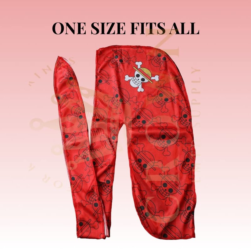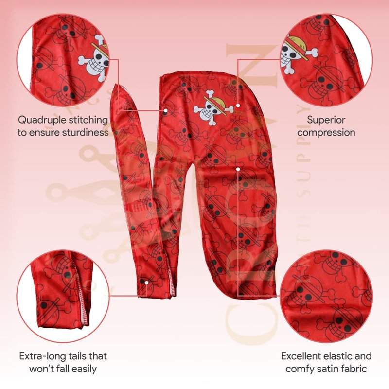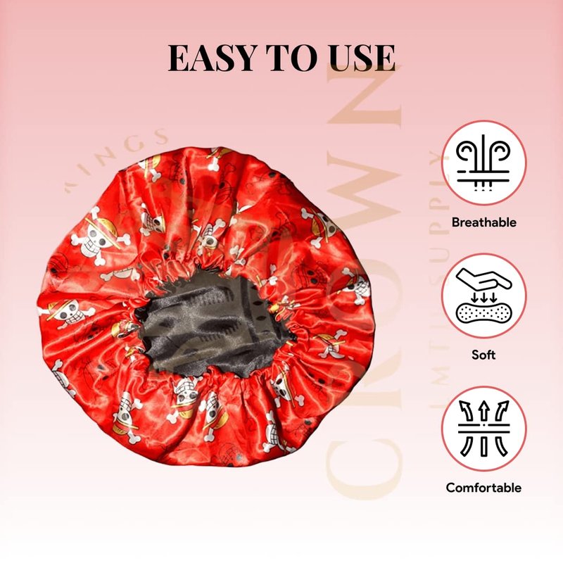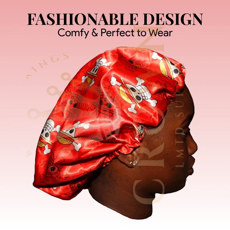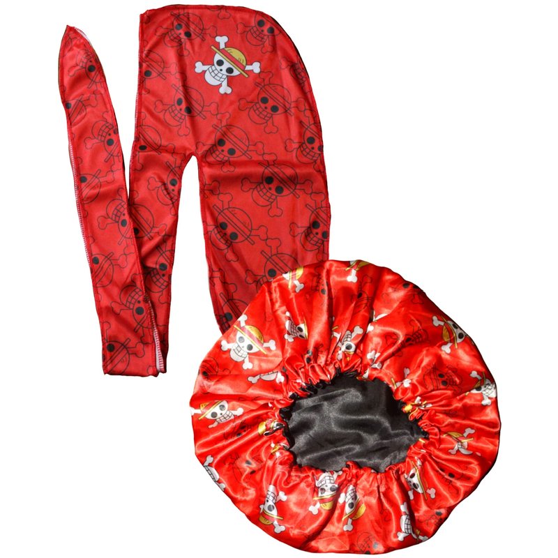 Anime Durag and Silk Bonnet 2pcs Set for Men Women, Silky Design Satin Fabric Comfort Compression, Red Skull