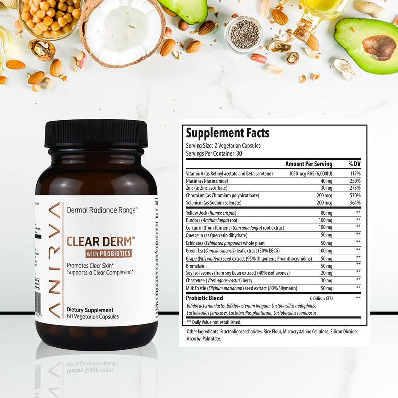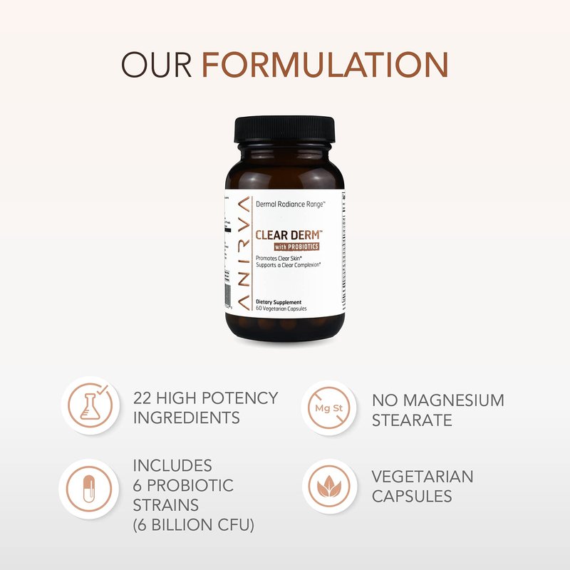 - ELIMINATE ACNE BREAKOUTS - ClearDerm with Probiotics is an acne supplement that contains powerful ingredients that help reduce blemishes. It regulates sebum production which helps reduce pore size and decrease the chances of future breakouts.