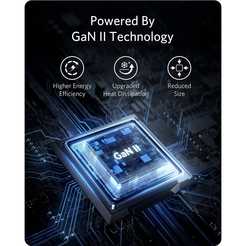 - Powered by GaN II Technology: With a 20% increase in operating frequency, an innovative stacked design, and an upgraded circuit board structure, GaN II technology makes our latest charger smaller without sacrificing a drop of power.
