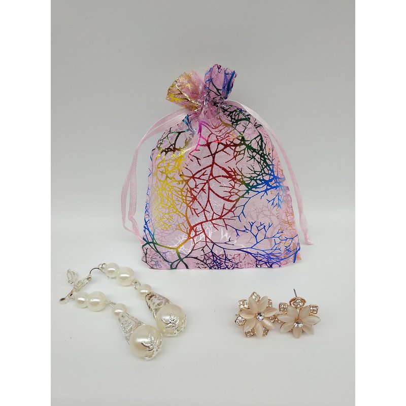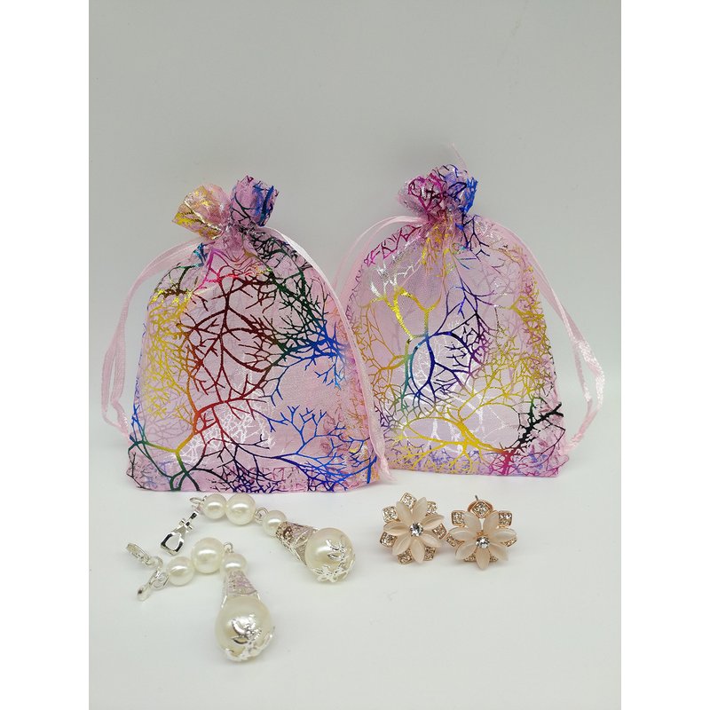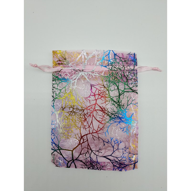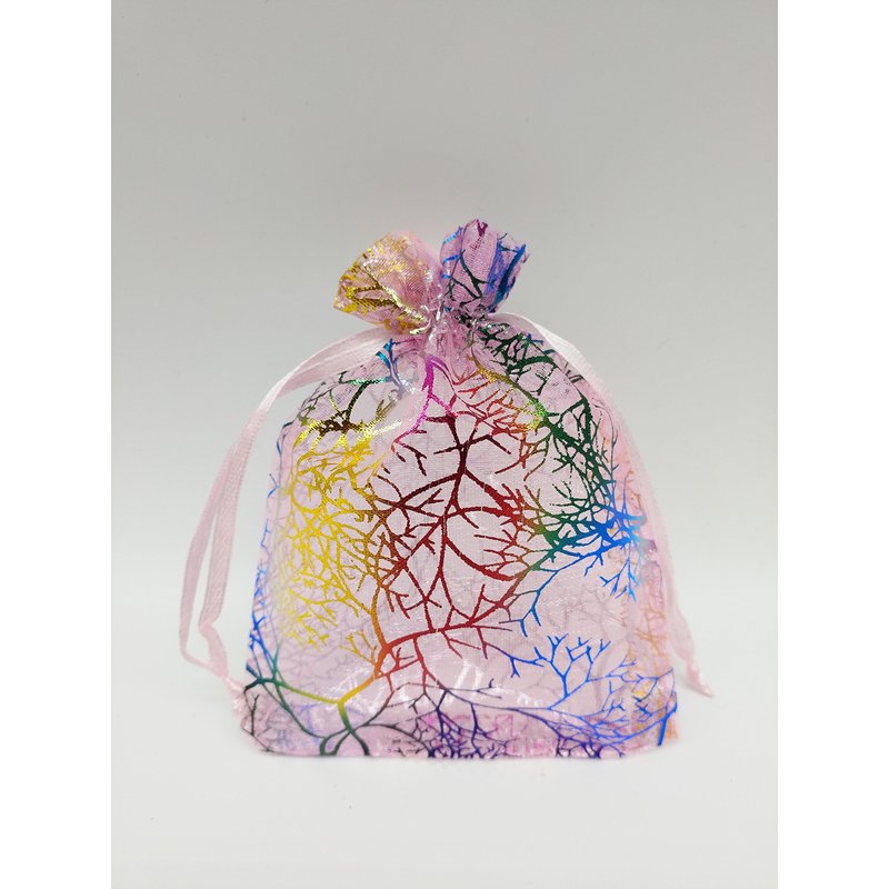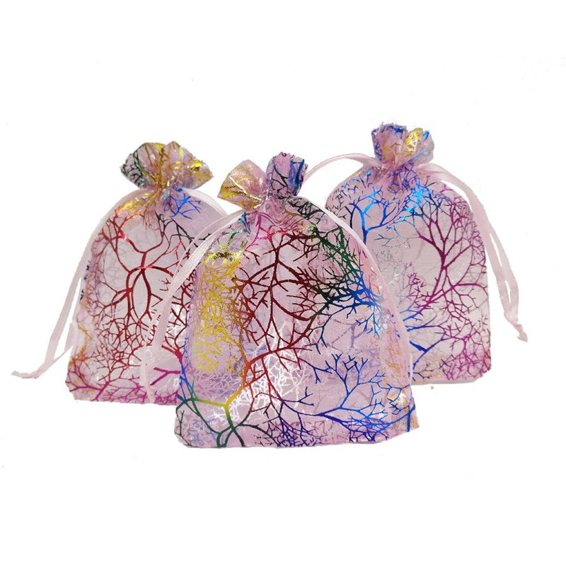 Ankirol 100pcs Sheer Organza Favor Bags For Wedding Baby Shower Rattan Print Gift Bags Samples Display Drawstring Pouches (3x4 inch, coral pink)