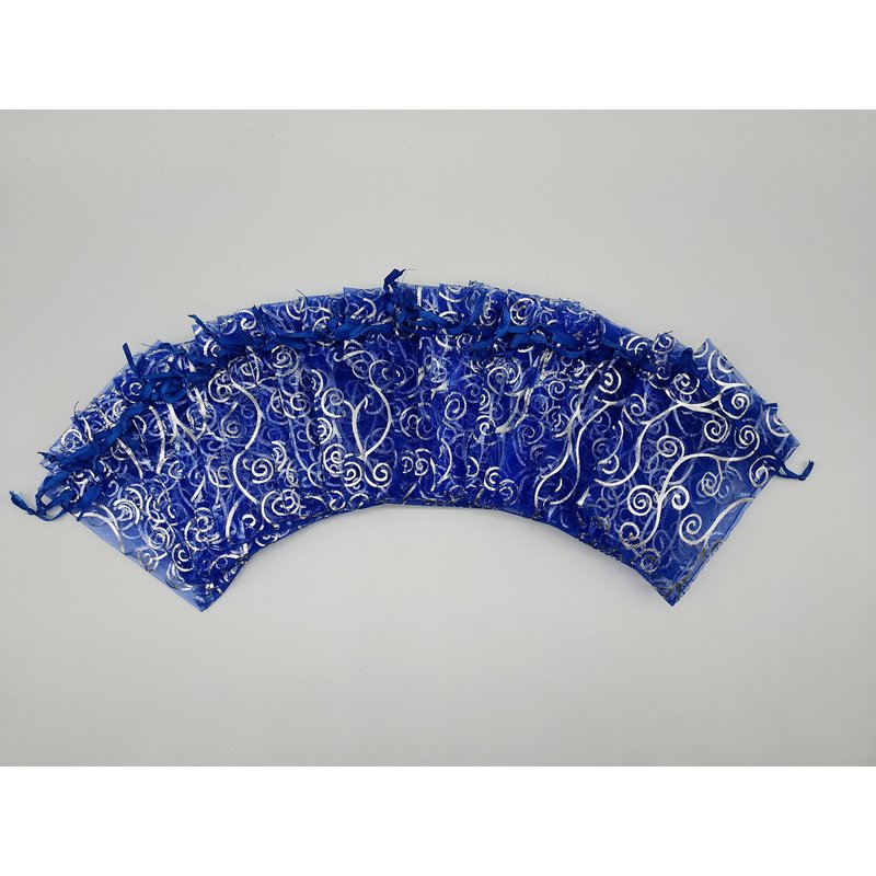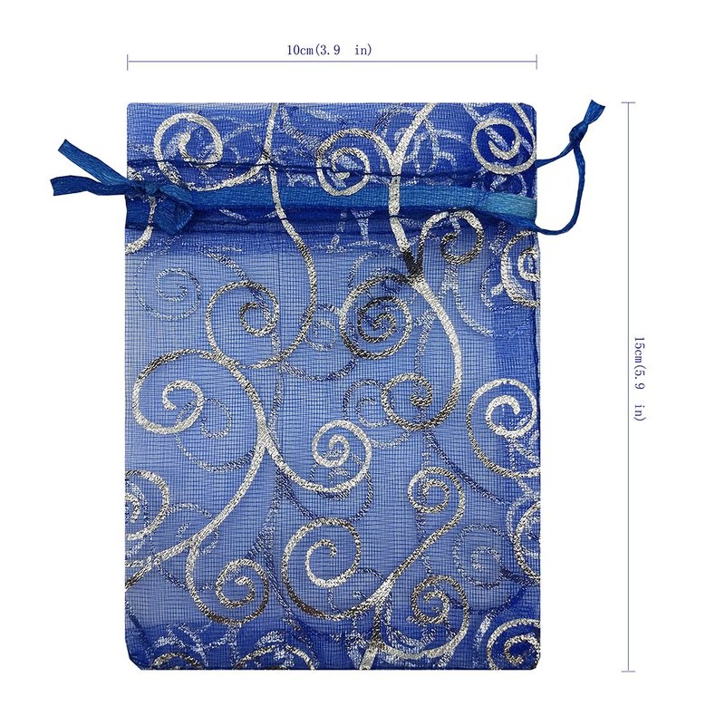 Ankirol 100pcs Sheer Organza Favor Bags For Wedding Baby Shower Rattan Print Gift Bags Samples Display Drawstring Pouches (4x6 inch, blue)