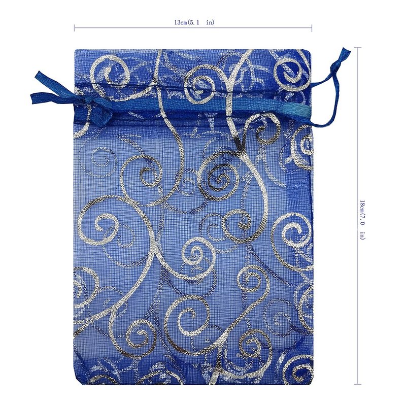 Ankirol 100pcs Sheer Organza Favor Bags For Wedding Baby Shower Rattan Print Gift Bags Samples Display Drawstring Pouches (5x7 inch, blue)