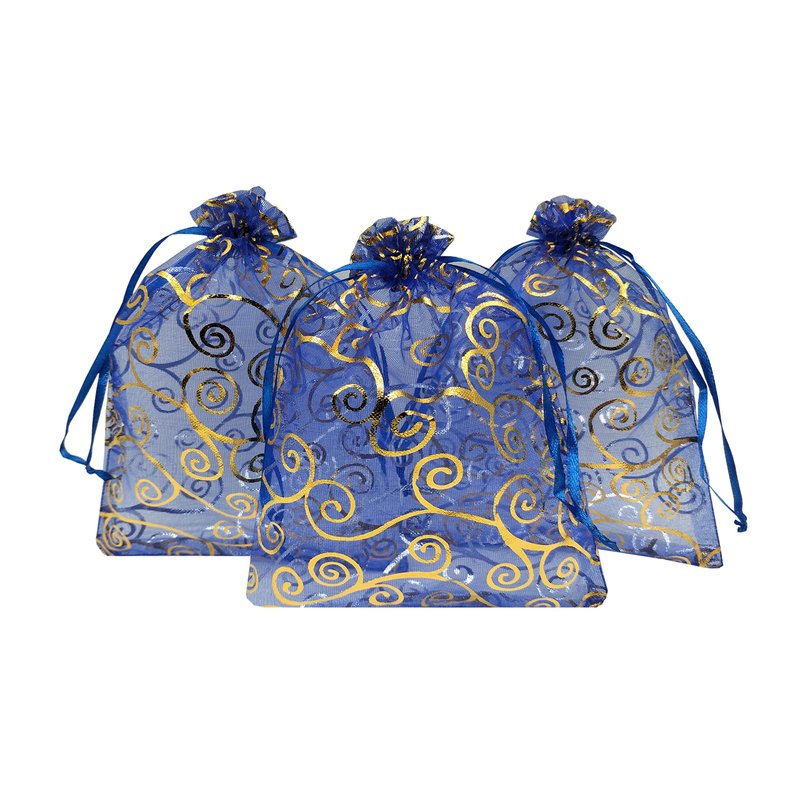 Ankirol Sheer Organza Favor Bags 6x8'' For Wedding Baby Shower 100pcs Gift Bags Samples Display Drawstring Pouches (blue swirl)