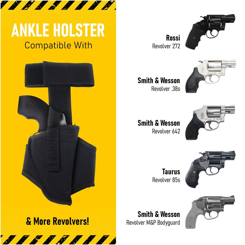 Ankle concealed carry revolver holster Fits Most J Frames .38 Revolvers Ideal for Concealment Reinforce Stitches for Maximum Strength Fit Most J Frames Revolver .38 - S&W - Charters - Rossi - LCR - Taurus 38 - .38 J Frames (2.5" Barrel or Less) - S&W Revolvers (2.5" Barrel or Less) - Rossi 38 - Taurus 84,85, Ruger LCR, M&P BodyGuard 38 (2.5" Barrel or Less)