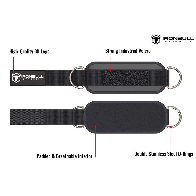 - HEAVY DUTY: Our ankle straps are designed with 2 heavy-duty stainless steel D-Rings that can handle hundreds of pounds and will never disappoint during your lifts. Concentrate on building better legs, focusing on the movement and not on the strap! Enjoy doing Cable Kickbacks, Cable Hip Abduction & Adduction, Cable Leg Mountain Climbers, Cable Lunges, Inner & Outer Thigh Contractions and many more without ever worrying about the ankle strap!