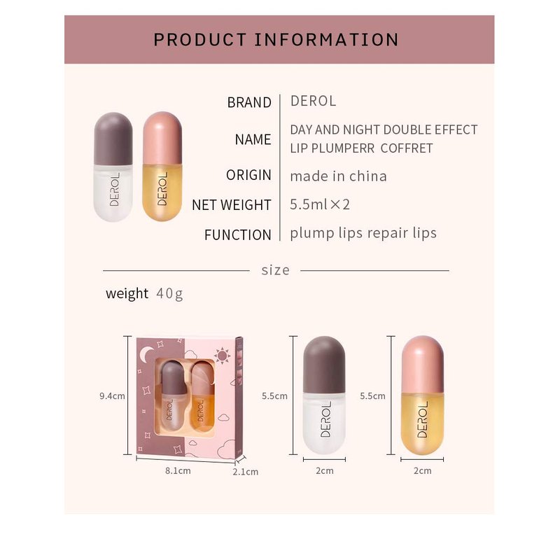 - The net content of the product is 5.5ml * 2, and it is designed into a compact package. It is convenient to carry and easy to use. Whether you are out or at home, you can use this lip plumper set as you wish.
