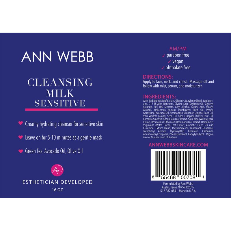 - Ann Webb Senstivie Milk Cleasner is A thick, hydrating cleanser with lactic acid Clinically proven to deep clean by removing dirt, excess oils