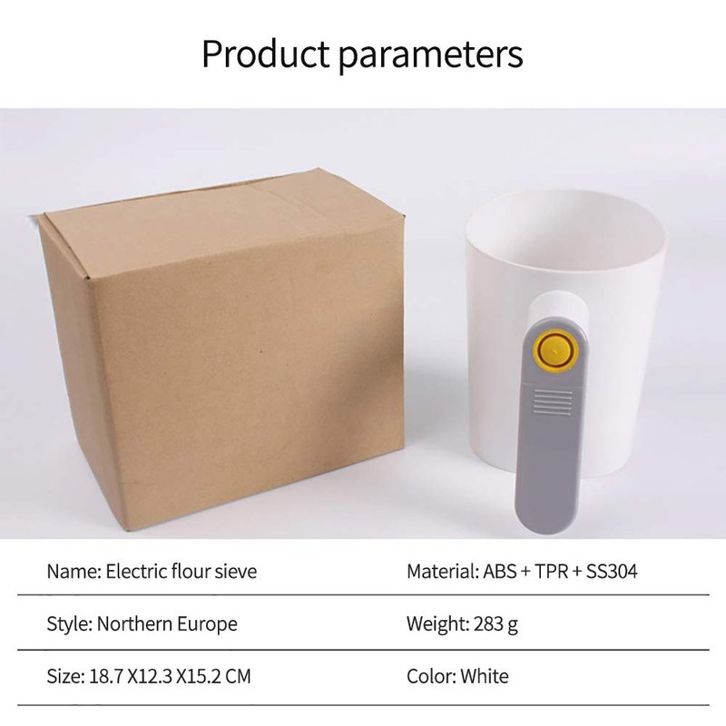 - 🍰BATTERY OPERATED FLOUR SIFTER FOR BAKING: Electric flour sifter can sift the lightly flour ,easy to use,One button and flour sifter one hand operation,Sift flour quickly andshort time. Save time of Baker, 2* AA battery(Be Not Included )
