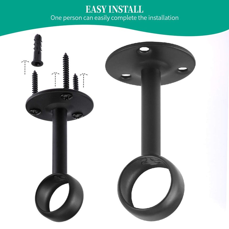 Heavy Duty Curtain Rod Brackets is made of High quality iron,strong hardness,sprayed with elegant black paint on the exposed parts to provent rust.