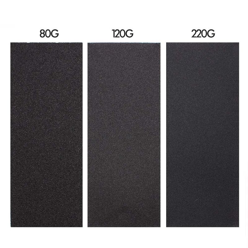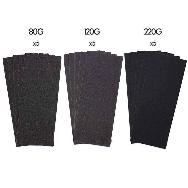 - Pakcage include : 15 pcs 9x3.6 Inch sandpapers. 80 grit 120 grit 220 grit each grit 5 pcs