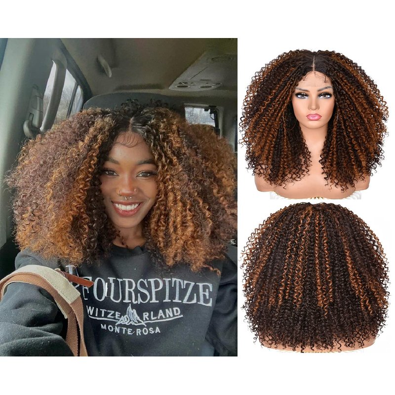 - Material:This one is short curly lace front wig is made of imported heat resistant synthetic fiber,Soft similar human fiber, soft similar human hair touching,does not hurt the skin
