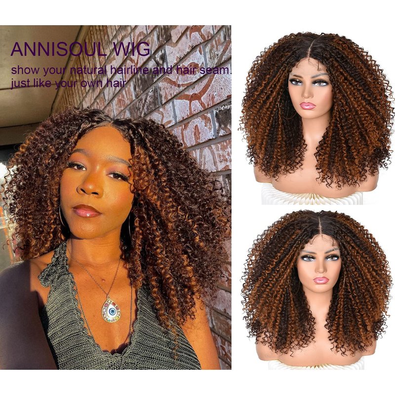 ANNISOUL Curly Lace front Wigs for Black Women Highlight Ombre Curly lace front Wig Synthetic Hair Pre Plucked 13x4x1HD Long Glueless Curly Afro Wig Black and Brown Synthetic Lace Frontal Wig