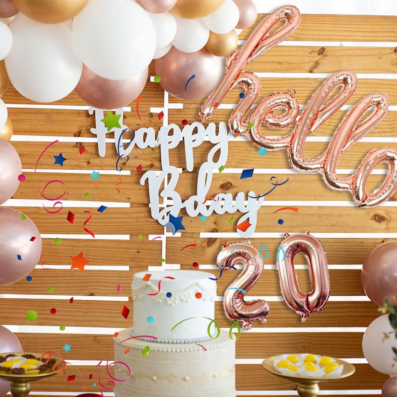 AnnoDeel Hello 20 Banner Foil Balloons, 32inch Rose Gold one-piece Letter Mylar Balloonss for Twenty Birthday Celebration Party Decor