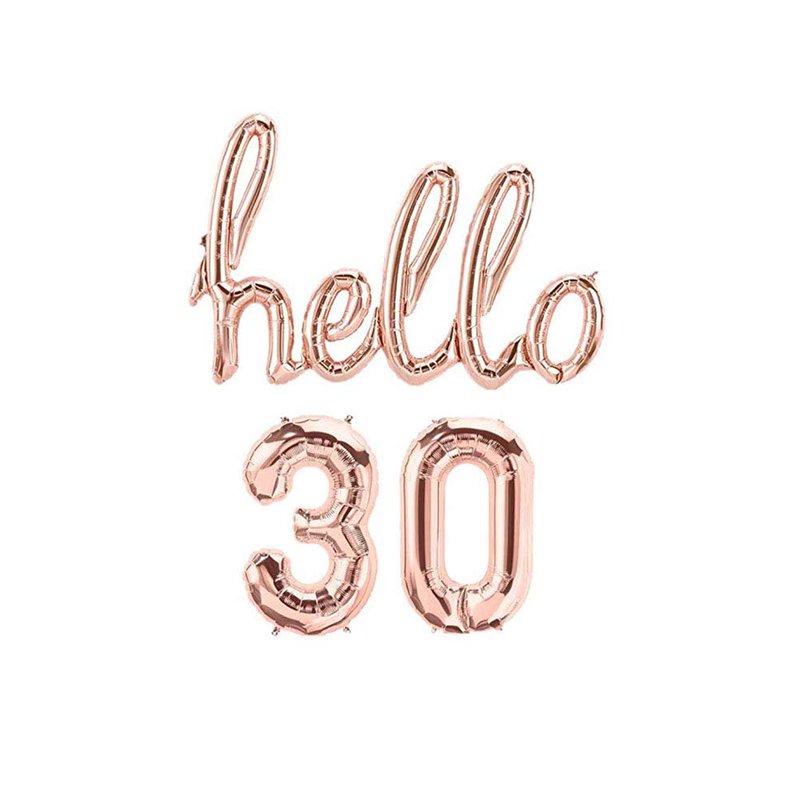AnnoDeel Hello 30 Banner Foil Balloons, 32inch Rose Gold one-piece Letter Mylar Balloonss for Thirty Birthday Celebration Party Decor