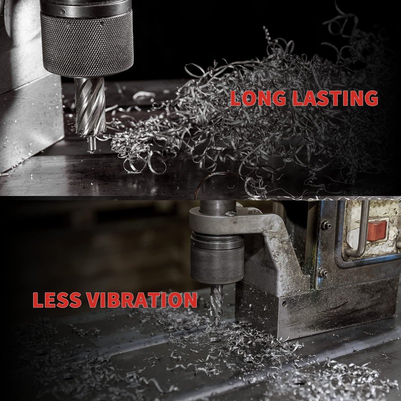 - CNC-machined high precision annular drill bit set with 3/4 inch Weldon shank (with 2 flats) for secure clamping and edge finish designed for smooth, reamed, burr-free edges of drilled holes. Use a firm steady pressure throughout the cut for best results