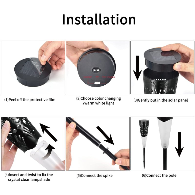- 【Easy to Install】:No additional tools, wiring, or power supply is needed.Connect the parts and push the ground spike into the soil where there is sun shines, it just takes a few seconds.