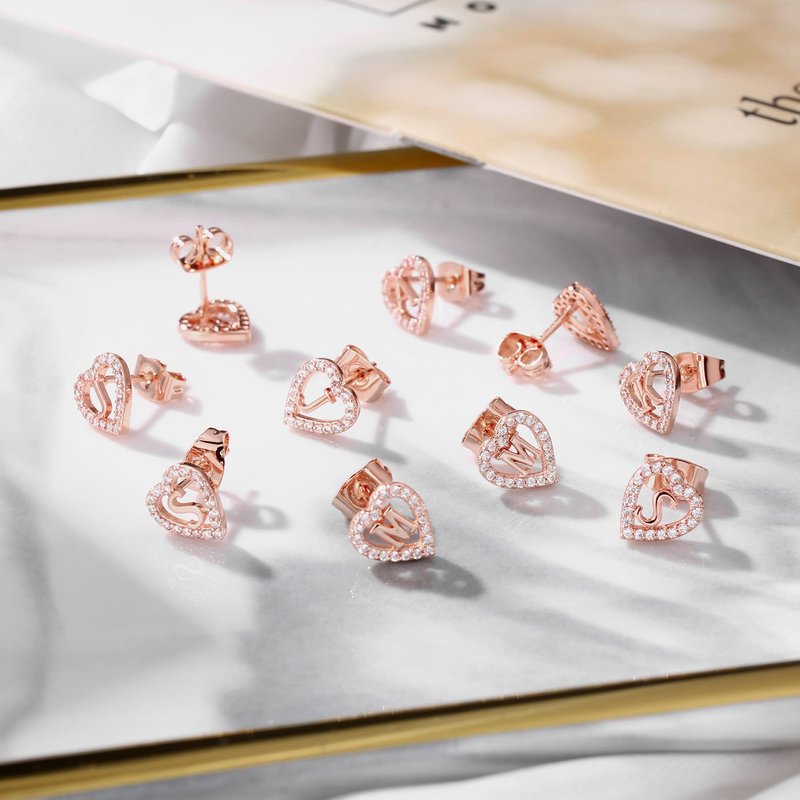 - 💕MATERIAL: S925 Sterling Sliver Post, letter earrings are 14K solid rose gold over and pave with AAAAA+ cubic zirconia. The initial stud earrings are nickel and lead free, hypoallergenic, anti-rust.