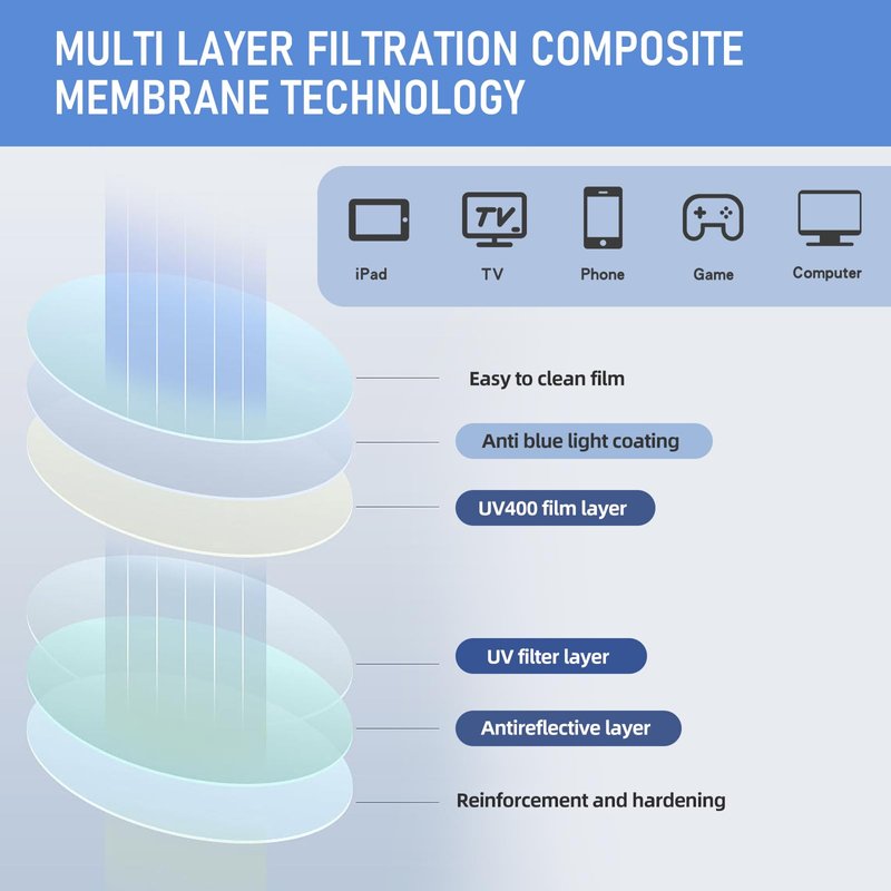 - 【Anti Blue Light】Blue light blocker, 100% UV400 protection, effectively resist 100% harmful blue rays. Filter Computer Glare to reduce eyestrain,alleviates visual fatigue and discomfort from browsing mobile phones, tablets, gaming and computer working. minimize eyestrain, headache, radiation, migraine.