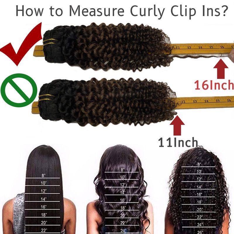 Please be noted: For curly hair, need to stretch the hair to measure the length. We recommend to choose one or two size longer than the length of the straight hair extension you purchased, when buying curly hair.