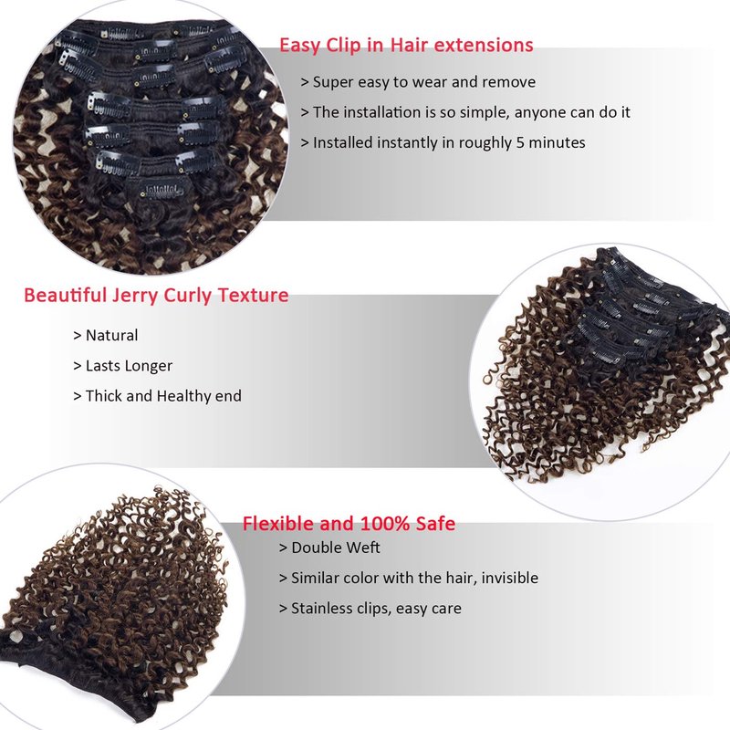 - [Thick & Soft 3B 3C Curly Clip in Hair Extensions]: These hair extensions clip in human hair are soft, thick from top to bottom, can be cutted, curled, dyed, and straightened, just like own hair. But the hair is process, it is more easily dyed to darker color.