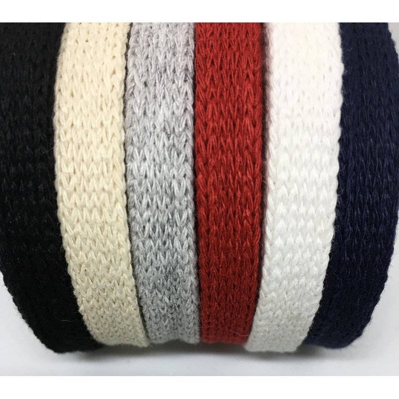 3/8" COTTON FLAT CORD. PRETTY PATTERN. AVAILABLE IN 3, 5, OR 10 YARDS IN BLACK, WHITE, NATURAL, RED, NAVY, AND HEATHER GREY.