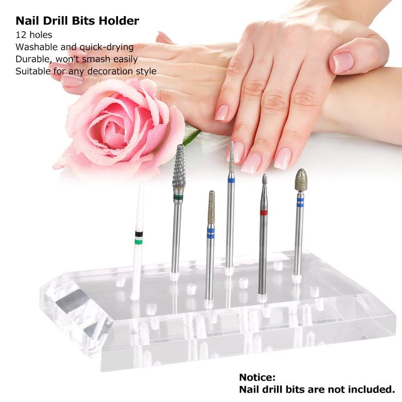 - PANA Square Nail Drill Bit Holder Organizer has a 12 holes to hold any 3/32” Shank Carbide Bits well. It is made with a high graded plexiglass to provide you a sturdy and durable product for a long-lasting use.