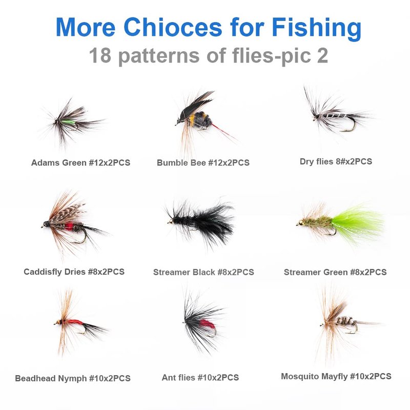 - Good Variety & Great Price: Excellent selection of 18 popular flies pattern with great value, a must-have starter set and ideal gift for any fly anglers or fishing lover.