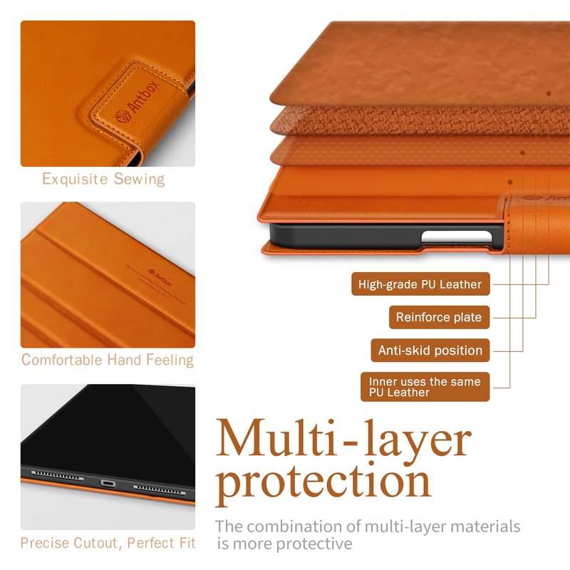 Antbox for iPad Pro 11 Inch Case 2024 M4, Premium Vegan Leather, Supports Pencil Pro and Pencil (USB-C), Auto Sleep/Wake Function, Built-in Pencil Holder (Orange)