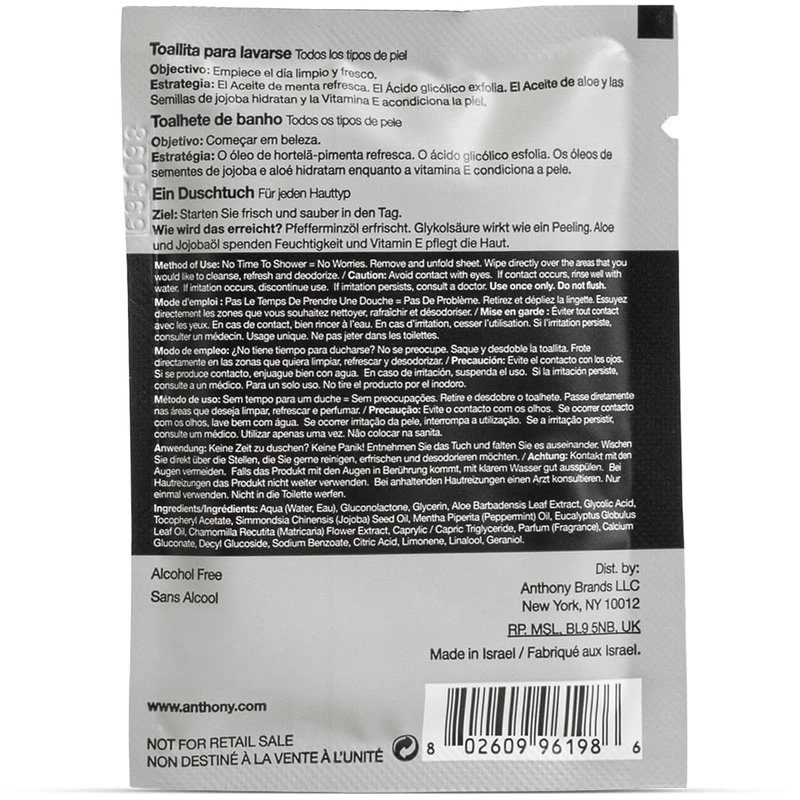 - SHOWER ANYWHERE, ANYTIME — No time or place for a shower? Grab one of these pre-moistened towelettes and wipe off sweat and grime; no water or rinse needed. Just wash, toss and go. Great after lunch-hour workout and outdoor sports.