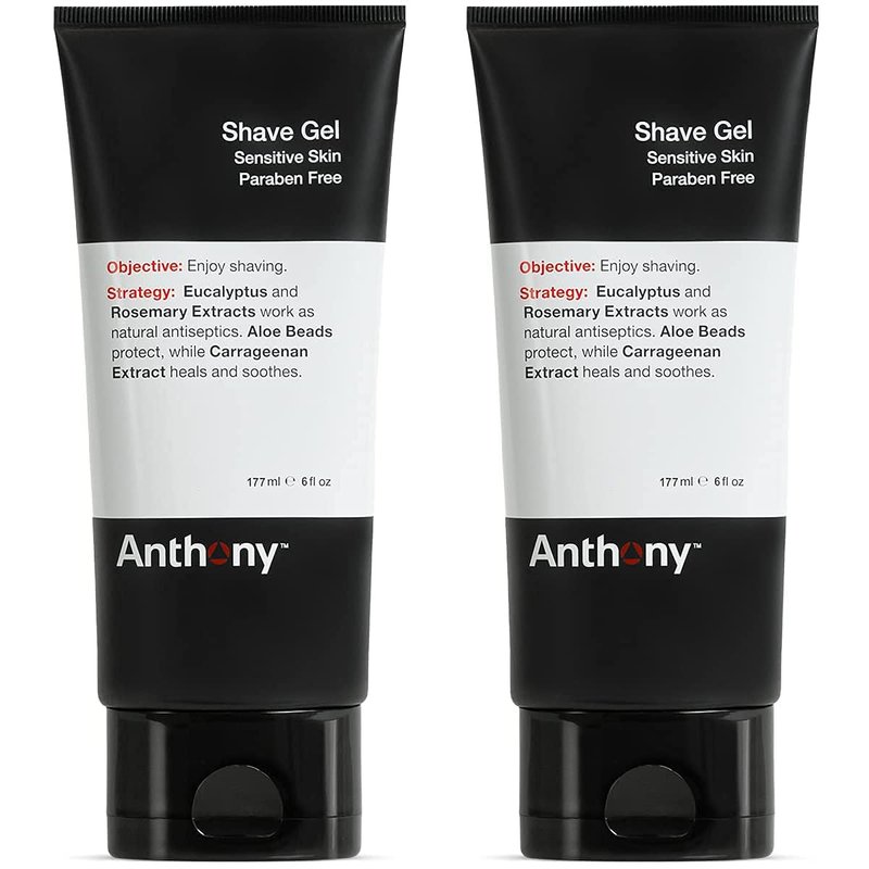 Anthony Shave Gel for Sensitive Skin – Non-Foaming, Soothing Shaving Cream for Men and Women. With Aloe Vera Beads, Eucalyptus, Rosemary and Carrageenan Extract - 6 Fl Oz (2 Pack)