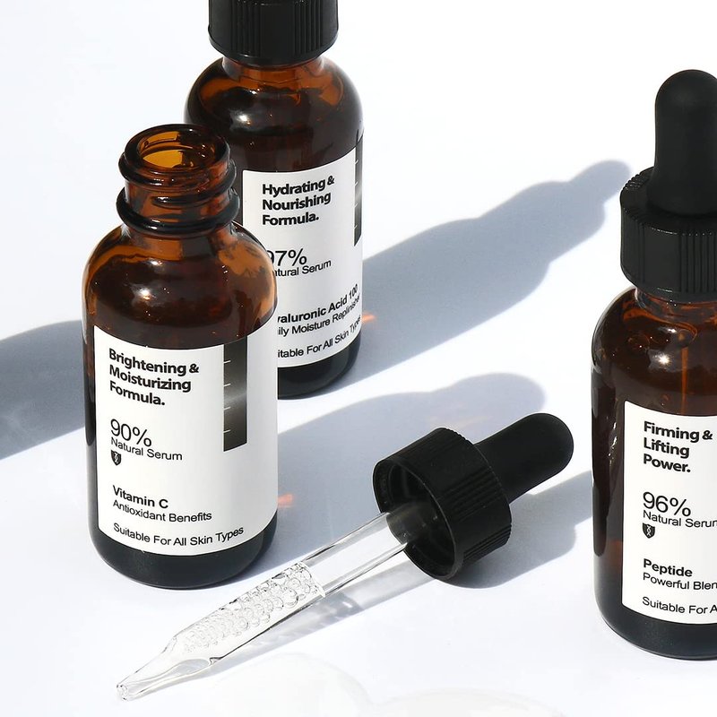 - This 96% natural Facial Serum is formulated with multi-peptide complex. Applying Peptides topically leads to a firmer and younger-looking-skin. Peptides also help repair and fortify the skin by stimulating the production of collagen and elastin and slowing the aging process.